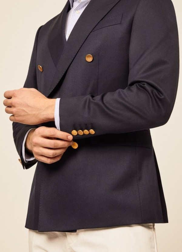 対照的なボタンがついたこのクロスブレザーの優雅さは、クラシックなスタイルと、素材の優れた品質によってもたらされています。よりフォーマルな機会には、胸ポケットにハンカチを加えてください。
