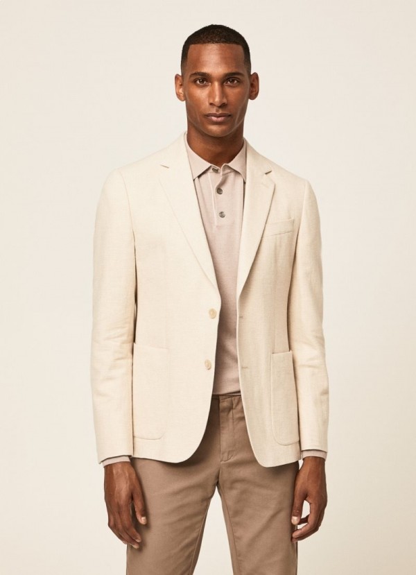 Blazer vervaardigd in een fijne linnenmixstof en een elegant dobby-ontwerp. Ideaal voor elk formeel zomerevenement vanwege de luchtige aard en ademende eigenschappen.