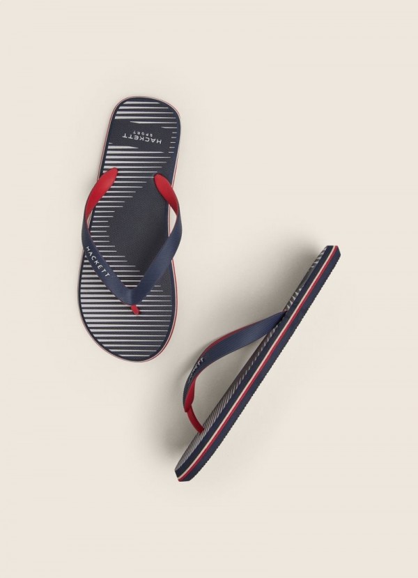 Basis teenslipper met een flexibele 3-punts rubberen band en binnenzool met een verfijnd gestreept design. Het reliëflogo van ons merk valt op op de rubberen strip, passend bij het design van de binnenzool.