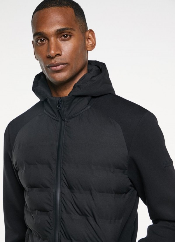 Gewatteerde puffer met afneembare capuchon, gemaakt van dubbelgebreid katoen, elastaan en polyester. De vulling aan de voorkant van het kledingstuk biedt een hoger niveau van warmte en comfort. Combineer het met een van onze joggingbroeken voor een sportieve look.
