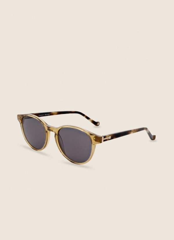 Disse solbrillene har en rund skilpaddeskallinnfatning i vintagestil som står i kontrast til de moderne honningfargede glassene. Inspirert av våre ikoniske Hackett-mansjettknapper har de H-formede detaljer på sidene og tuppene.