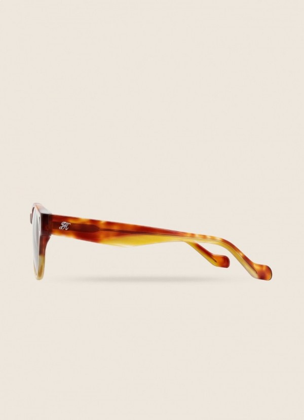 - Óculos de sol Clubmaster - Armação de casco de tartaruga cor de mel - Assinatura gravada de Jeremy Hackett na haste - Acetato japonês premium