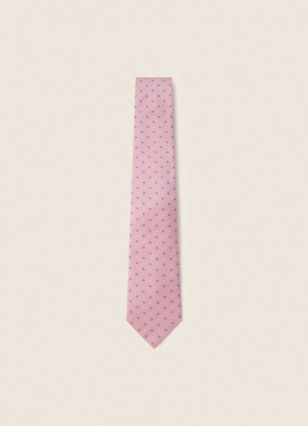Esta gravata de seda atemporal apresenta um padrão de bolinhas e diamantes em um fundo simples. É a versão contemporânea de um design tradicional que a torna o complemento perfeito para qualquer um dos nossos elegantes ternos.