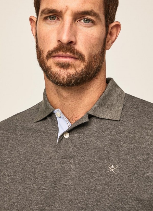 Hackett Classic Fit Camisa Polo Manga Curta Masculina Cinza