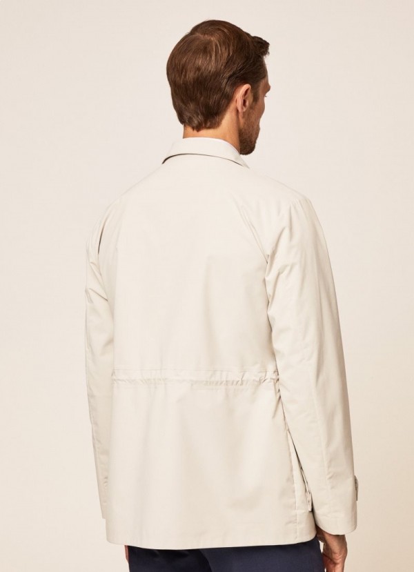 Feito em uma membrana de tecido técnico, esta jaqueta impermeável oferece calor e respirabilidade. Tem um design inovador com dois bolsos remendados na parte inferior e um bolso superior com zíper.