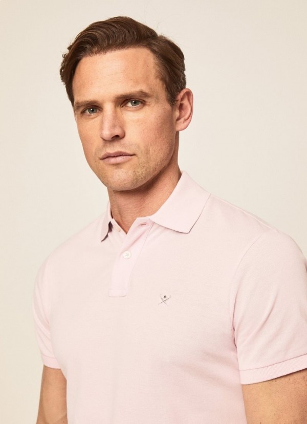 Camisa polo de manga curta Hackett Pique para homens em rosa claro