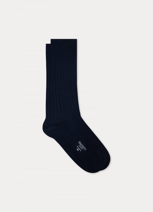 Șosete Hackett din bumbac cu nervuri pentru bărbați, bleumarin