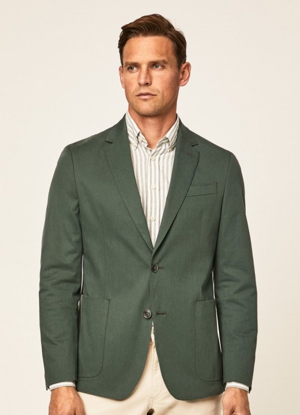 - Slim fit - Imitație cusături de mână - Două buzunare plaste și un buzunar la piept - Închidere simplă cu doi nasturi - Fante laterale - Trei buzunare interioare < br> br>- Compozitie: 58% bumbac, 40% tencel, 2% elastan