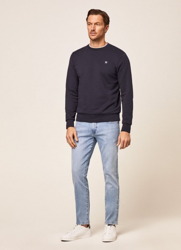 - slim fit - Închidere cu fermoar și nasturi - Buzunare pe spate - Logo brodat pe buzunarul pentru monede - Petic din piele cu scrierea mărcii