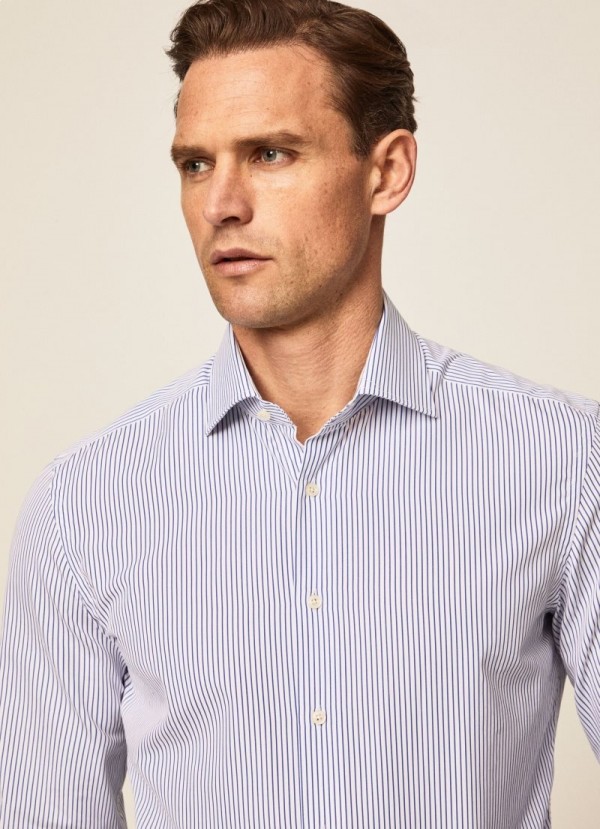 Cămăși Hackett Slim Fit din bumbac cu dungi Bengal Bărbați, alb, bleumarin