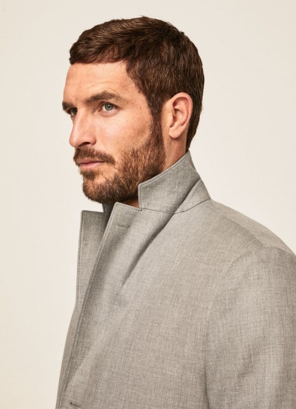 Acest pardesiu cu tăietură largi, confecționat dintr-o țesătură exclusivistă din Italia, se remarcă prin designul său elegant din fire de bumbac amestecat. Are rever crestat și închidere cu trei nasturi.