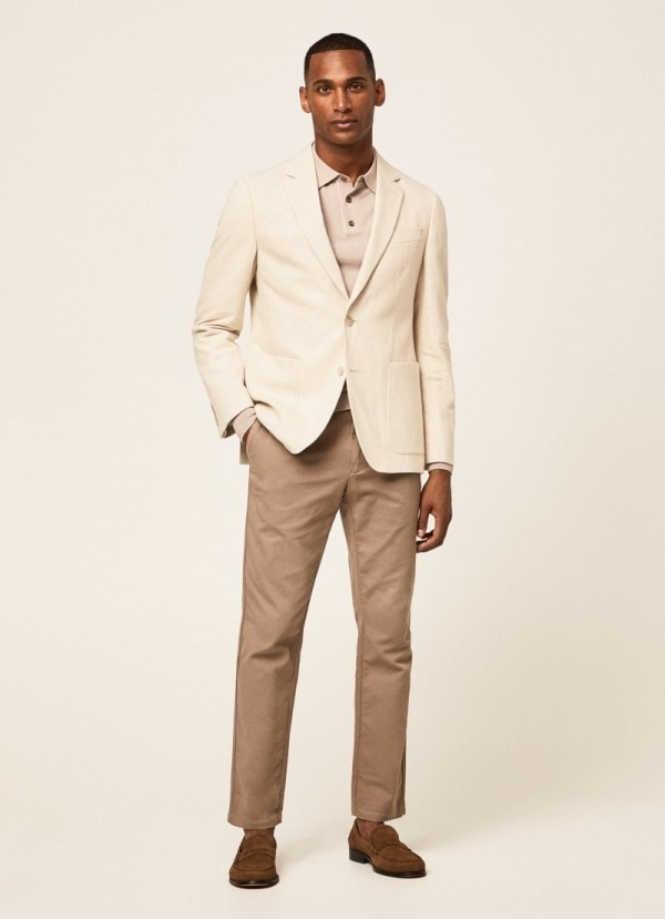 Blazer fabricat dintr-o țesătură fină din amestec de in și un design elegant dobby. Ideal pentru orice eveniment formal de vară datorită naturii sale aerisite și respirabilității.