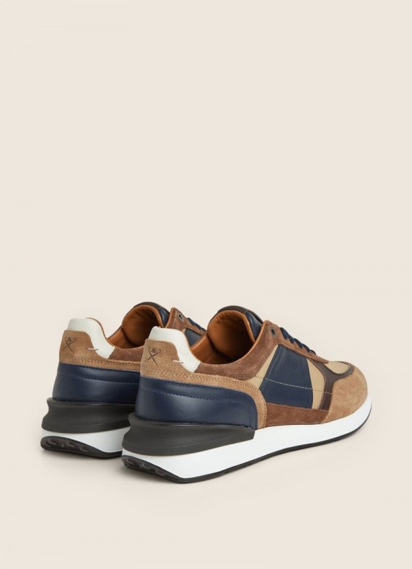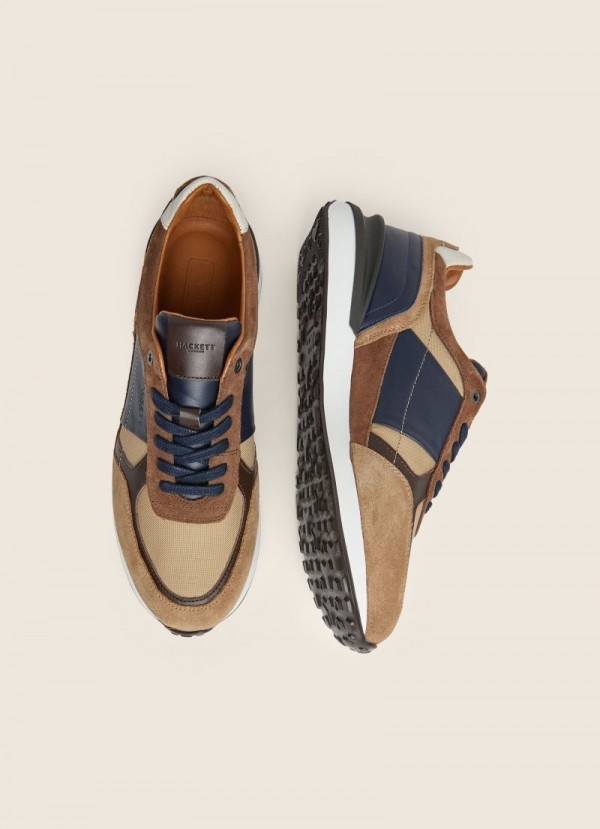 Pantofi casual Hackett, cu detaliu din piele intoarsa, pantofi combinati barbati maro