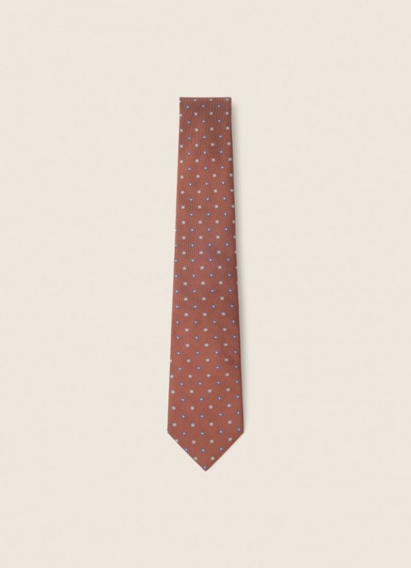Denna eleganta sidenslips har en slående tvåfärgad blommig design på en räfflad bakgrund. Kombinera den med en av våra neutrala kostymer för en distinkt formell look.