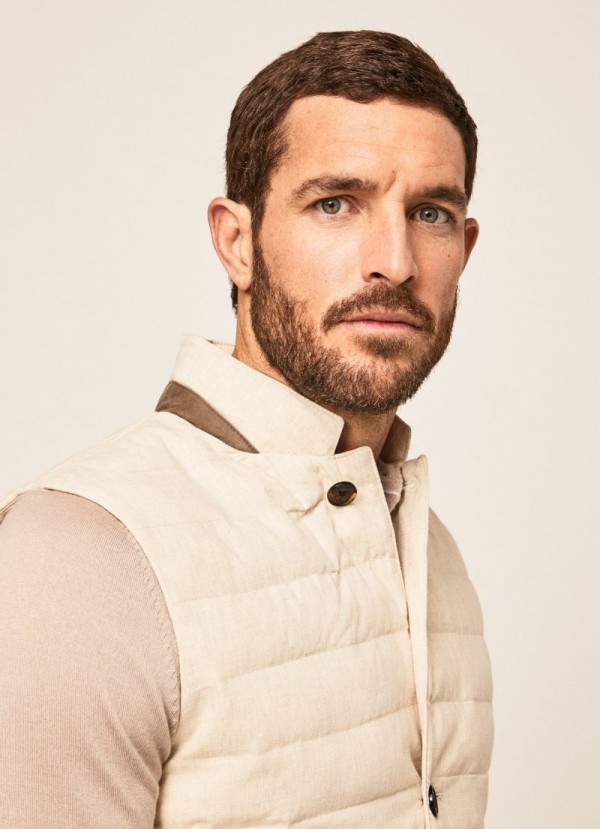 Med en modern och dynamisk design, kombineras denna väst gjord i texturerat bomullslinne mycket väl med vår linje av moderna chinos eller jeans. Den håller en bekväm stil som ger värme och rörelsefrihet.