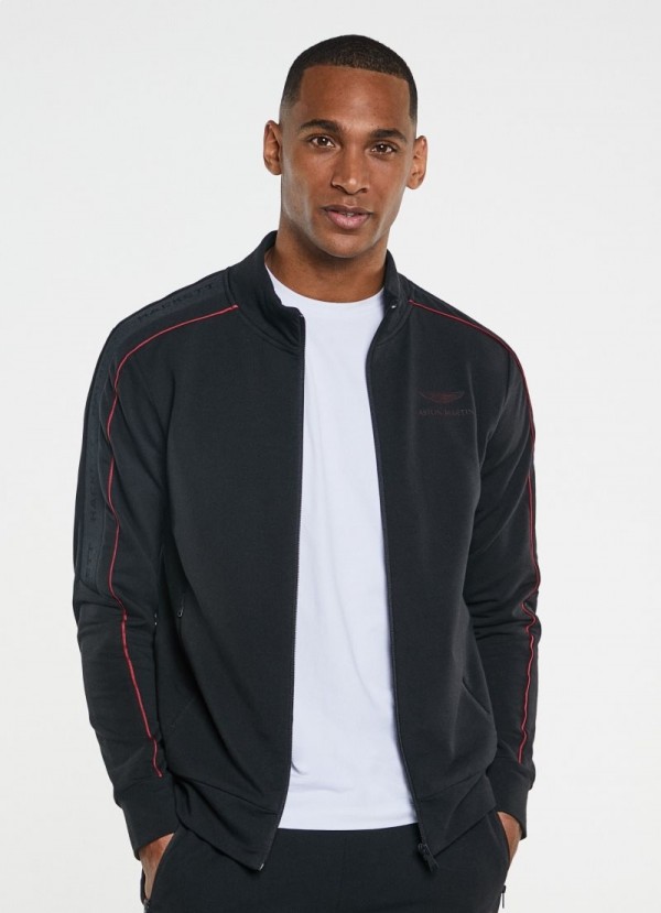 Denna tröja med dragkedja har detaljer som märkeslogotyp som tejpar ner båda ärmarna och en kontrastfärgad rand. Blixtlåsfickor på båda sidor ger den en ännu sportigare finish.