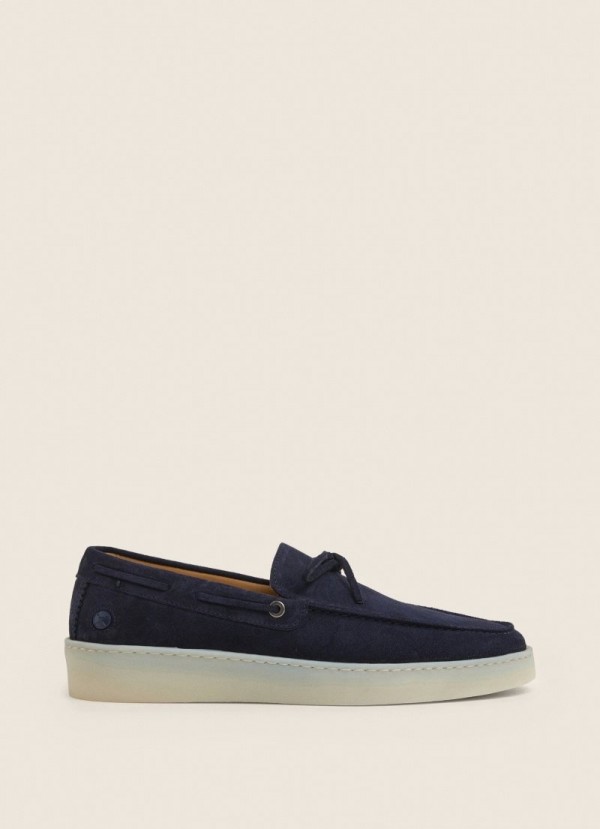Comfortable moccasins manufactured in silky cow suede and with a classic and minimalistic design. They present a traditional construction on the instep combined with lace detailing on the tongue and sides, as well as a full leather inner lining and an innovative semi-transparent sole.
