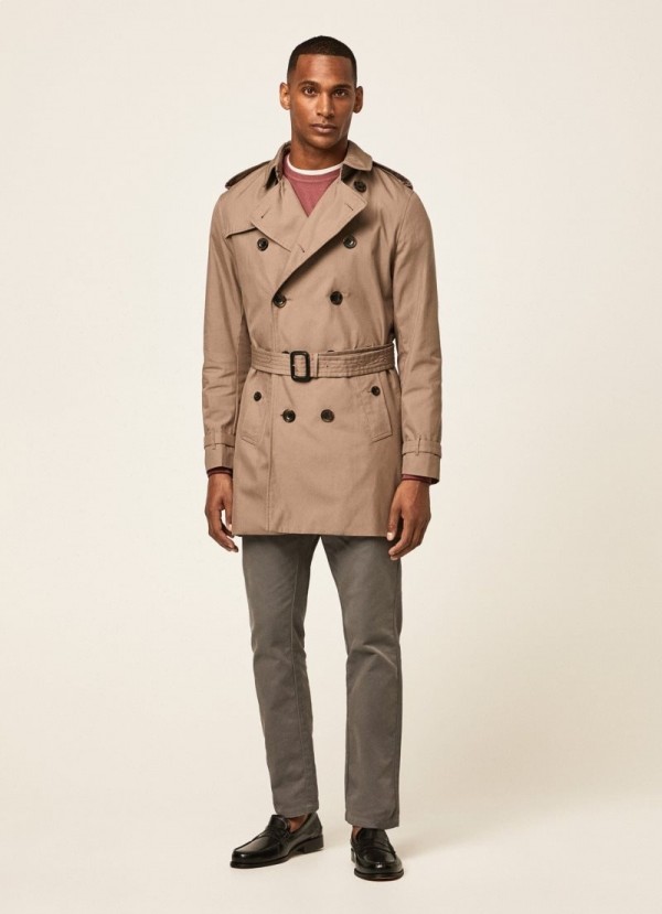Dizajn tohto trenčkotu predstavuje hranicu medzi klasikou a modernou. Vyrobené z odolnej látky, kombinuje tradičné detaily, ako sú ramenné nárameníky a klopový golier, s modernými detailmi.