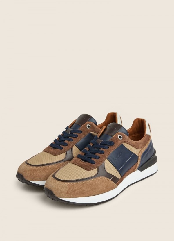 Neformálne topánky Hackett Semišové detailné kombinované tenisky Pánske hnedé