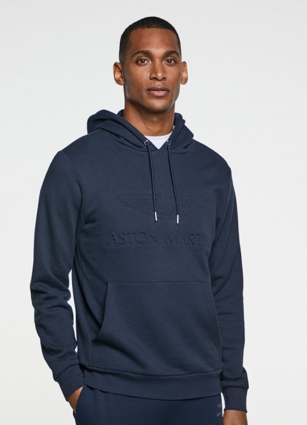 Pánska mikina s kapucňou Hackett Amr Logo s kapucňou v tmavomodrej farbe
