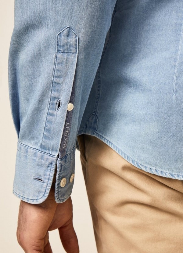 Ideálna na neformálne príležitosti, táto 100% bavlnená džínsová košeľa sa perfektne kombinuje s našimi džínsami a teniskami. Má úzky strih a náš charakteristický golier Kent spolu s ikonickým logom Hackett vyšitým na hrudi.