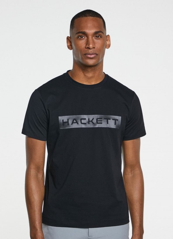 Pánske tričko s potlačou loga Hackett v čiernej farbe