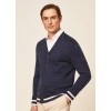 Pánsky bavlnený hodvábny kardigánový úplet námornícka modrá Hackett
