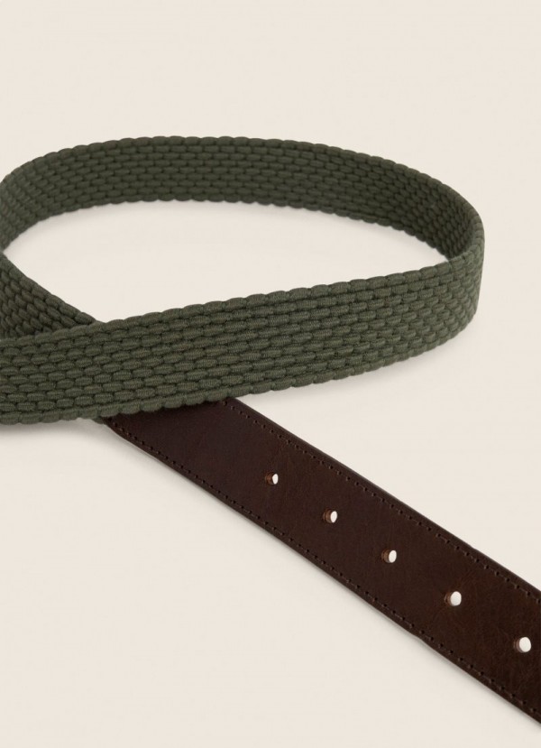 Tento pletený opasok, vyrobený v Anglicku z najkvalitnejšej talianskej kože a vysoko kvalitnej španielskej látky, je štýlovým a všestranným doplnkom. Detaily, ako je pútko v tvare písmena H a kontrast kože a látky, dodávajú punc sofistikovanosti.