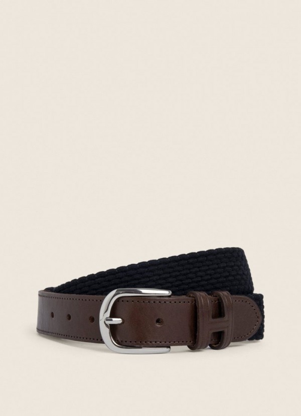 Tento pletený opasok, vyrobený v Anglicku z najkvalitnejšej talianskej kože a vysoko kvalitnej španielskej látky, je štýlovým a všestranným doplnkom. Detaily, ako je pútko v tvare písmena H a kontrast kože a látky, dodávajú punc sofistikovanosti.
