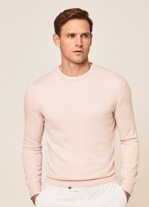 Svetloružový pánsky úplet s okrúhlym golierom Hackett