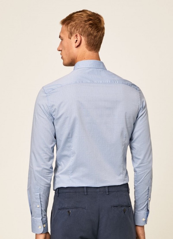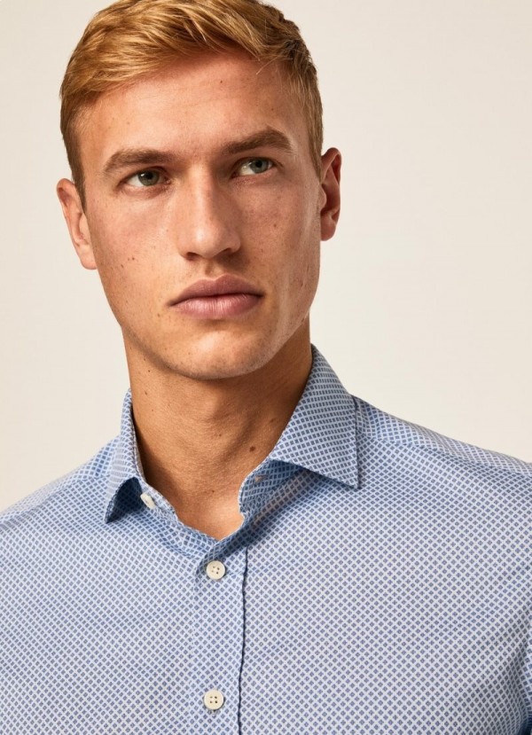 Melanj pamuklu kumaştan üretilen ve üzerinde sofistike bir mini fular baskısının öne çıktığı dar kesim gömlek. Dar kesimi ve popüler kırpılmış Kent yakamızın birleşimi bu terziliği her zaman favori yapıyor.